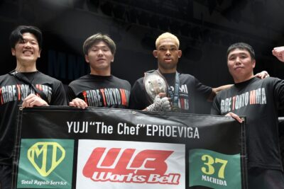 【Shooto2026#02】カーフ&ヒザでダメージを与えたエフェヴィガ。キャプテンをパウンドアウトして新王者に