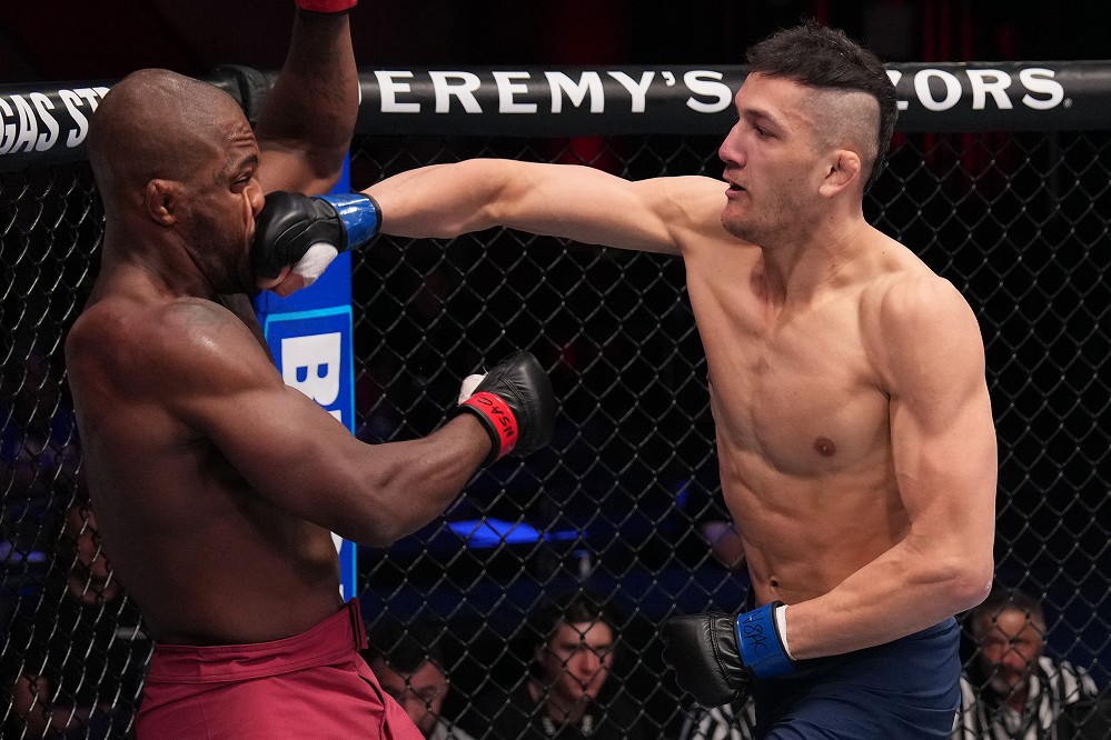 【写真】結構エグイ、ロウストンの強打——これだけホームスの顔面がゆがむパンチが何発もヒットしていた(C)Zuffa/UFC