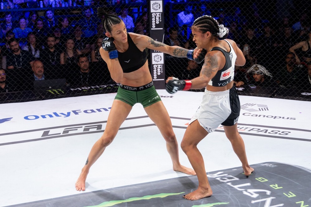【LFA216】アイエサ・ベルトソ、緊張感ある打撃戦からTD→驚速腕十字でシウバを下し新ストロー級王者に
