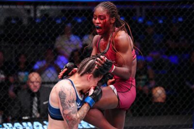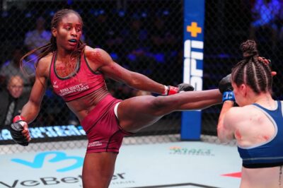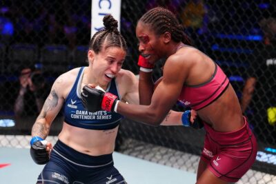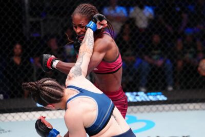左フックの強さが響き渡っていたフォーロが、右フックと右ストレートで複数のダウンを奪い、3-0で判定勝ち。技術、パワー、闘志、どこをとってもUFCで戦えない理由が見当たらない激闘で勝利を手にし――青タンができたフォーロは、「初回に全力で戦い過ぎたけど、最終回まで持たせることができた。この試合はママに捧げたい。毎日、良くない日だってベストを尽くしてきたの」と最後は涙を見せて話した。