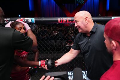 それでも左右のフックを見せ、テイクダウンを切ったフォーロはしっかりとハイはガードしている。ダイアーは力のある右ストレートを伸ばし、首相撲、左右のハイ、スピニングバックフィストと全ての持ち札を繰り出す。残り1分を切り、フォーロも再び体に軸があるパンチを繰り出すように。全てを出し切って15分を戦い抜いた両者にダナ・ホワイトは立ち上がって拍手を送ったばかりか、ケージに上がって両者に声を掛ける。