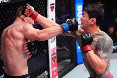 マコーリーはワンツーを決め、ファン・インスの右をサークルアウト。ファン・インスはもう覚悟を決める時間帯だ。左ロングフックから右を決めたファン・インスが、頭を押さえて一発を狙う。が、出せないまま離れたマコーリーの受ける。残り90秒を前に、マコーリーがダブルレッグでテイクダウン。30秒掛けて立ち上がったファン・インスはクリンチで押し込まれた状態となり、ダブルレッグをギロチンで切り返したが、極まらない。最後の15秒でレフェリーがブレイクを掛け、最後のチャンスが与えられる。が、ここも間合いを測ってしまったファン・インスは0-3で敗れた。