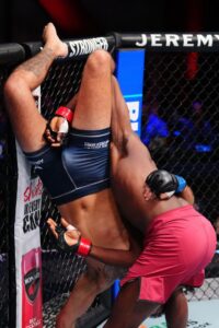 11勝目、5つ目の一本勝ち(※5KO勝ち)したギャント。「待ちきれない。僕は打撃でもグラップリングでもUFCでやれる」と貫禄すら感じさせるバックステージインタビューだった。