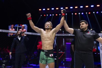 【PFL CS03】各ラウンドでTD、3Rには肩固めを極めかけた泉。センシを判定で下してPFL初勝利を掴む