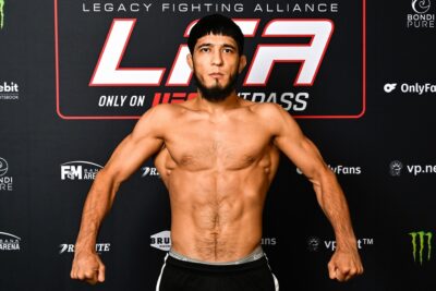 対するイスロンボエフは10勝1敗のウズベキスタン人ファイターで、ドバイを経て現在ではキルクリフFCでも練習している。10勝のうち5つのKO勝ちと3つの一本勝ちを誇るイスロンボエフは、ウズベキスタン人選手らしく母国よりロシアでキャリアを積み、UAEWを経て今回がLFAデビューとなる。