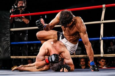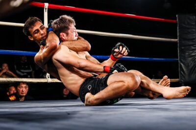 崩してデイネッシュの左腕に左足をかけたが、その足を抱え上げられてしまう。トップを奪ったデイネッシュは、スクランブルに来た島村の首を取って絞め上げる。これは極まらず、バックに回った。スタンドのままバックマウントを奪取し、RNCへ。