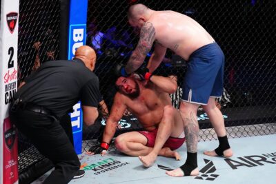 レカはヒジを入れながらヌフティラエフの動きに合わせてバックに回り、2Rと同じようにバックキープしながら細かいパンチを入れる。さらにレカは立ち上がってヒジを振り下ろし、最後は立ち上がったヌフティラエフをダブルレッグでテイクダウンした。1RはTD&バックコントロールで攻めたヌフティラエフだが2R以降は失速。レカが2・3Rは一方的に攻め続けて勝利を掴んだ。