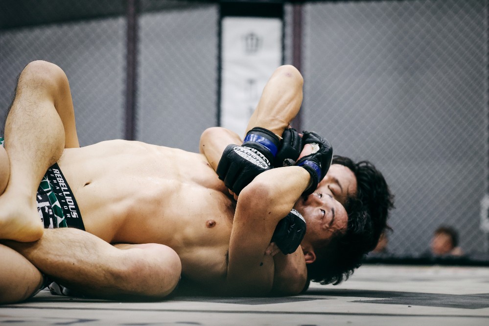 高岡が肩固めを狙うと大竹が背中を見せた。すかさずバックマウントを奪取した高岡は、たすき掛けからパンチ&RNCを狙う。大竹の体を伸ばし、右腕を首に回した高岡はそのままRNCでタップを奪った。