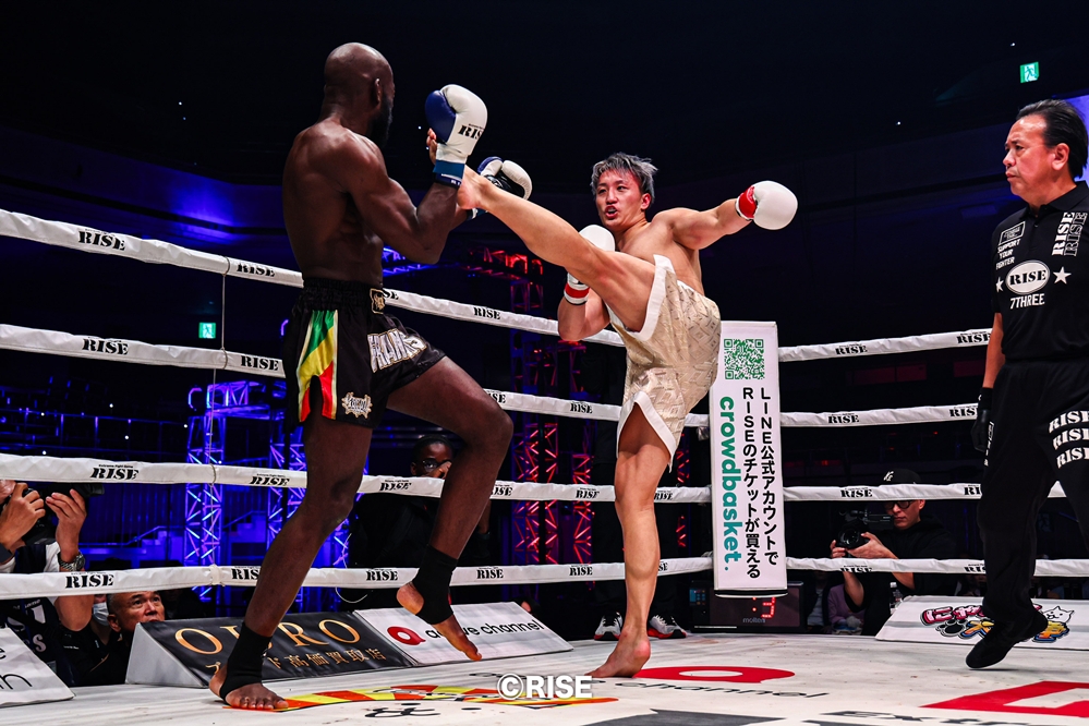 【写真】これまでダウンの応酬で打ち勝ってきた南原。今回は判定勝ちだったが、ゴマのパンチを被弾せずに蹴りで攻めた(C)RISE