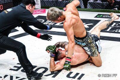 【RIZIN LANDMARK12】壮絶な打ち合いの末、秋元がおたつロックからのマウントパンチで萩原にTKO勝利