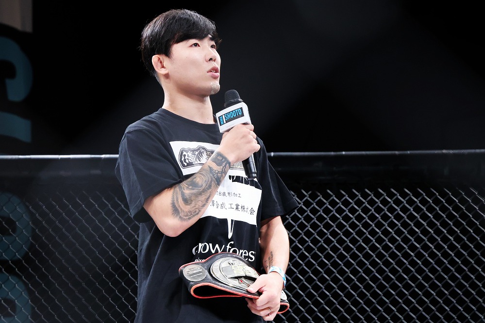 「先のことは一切見ていないです。胸を張って正規王者になることしか見ていません。このベルトは新井くんが怪我をして、たまたま自分のところに巡り回ってきたベルトだと思っているので、次の試合でしっかり勝って、第10代修斗フライ級チャンピオンになりたいです」