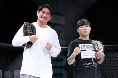 「パンクラスのタイトルマッチ(濱田巧×大塚智貴)でも最終的に組み勝った方がスプリット判定で勝ったりもしていたので、やっぱり軽量級は組みだなと思いました。重量級だったらアレックス・ポアタン・ペレイラみたいに組みをやらずに打撃だけでも行けるとは思うんですけど、フライ級でペレイラみたいに左フック一択で攻めていっても絶対に勝てないと思います」