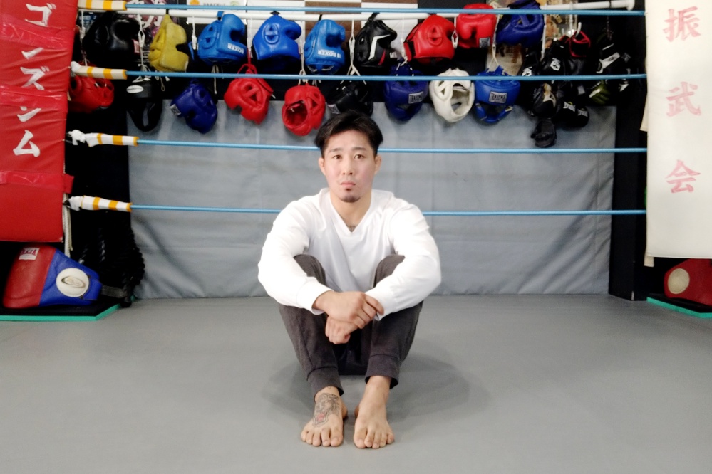 【写真】写真撮影で「座ってこちらを向いてください」とお願いすると、体育座り(三角座り)——という素の姿と、試合のギャップが興味深いファイターです(C)SHOJIRO KAMEIKE