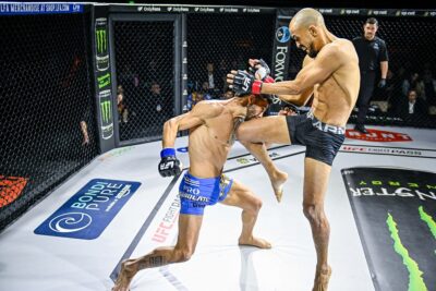 さらにカルバーリョのステップインに右フックを合わせてダウンを奪ったピントスが、立ち上がったカルバーリョと距離を取る。カーフから右フックで2度目のダウンを奪ったピントスが、バックを制す。