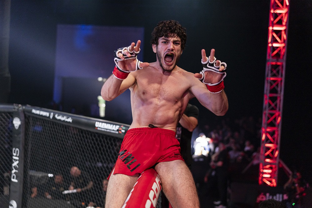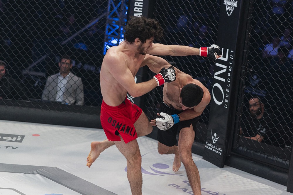 今年の2月にLFAで上久保周哉と対戦予定だったが、負傷欠場したユニソフが米国籍ファイターとしてUAEWに初出場。当時はキャリア10勝0敗だったが、その後1分けを経験している。対するオスマルニは11連勝のアゼルバイジャン人ファイターだ。サウスポーのオスマルニが右ローから左を伸ばす。ユニソフは最初のテイクダウン狙いで、ダブルレッグを決める。半身のオスマルニのバックに回ったユニソフは、立たれると即ダブルレッグで上を取り直す。