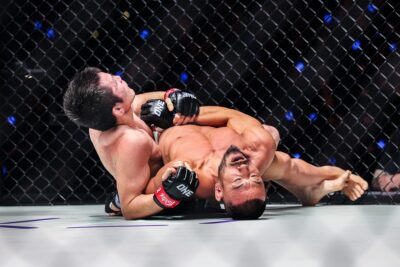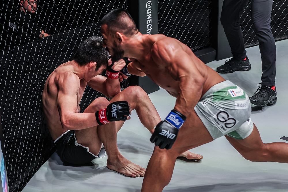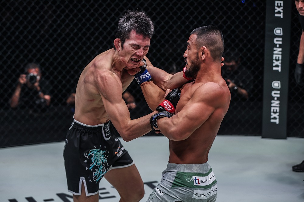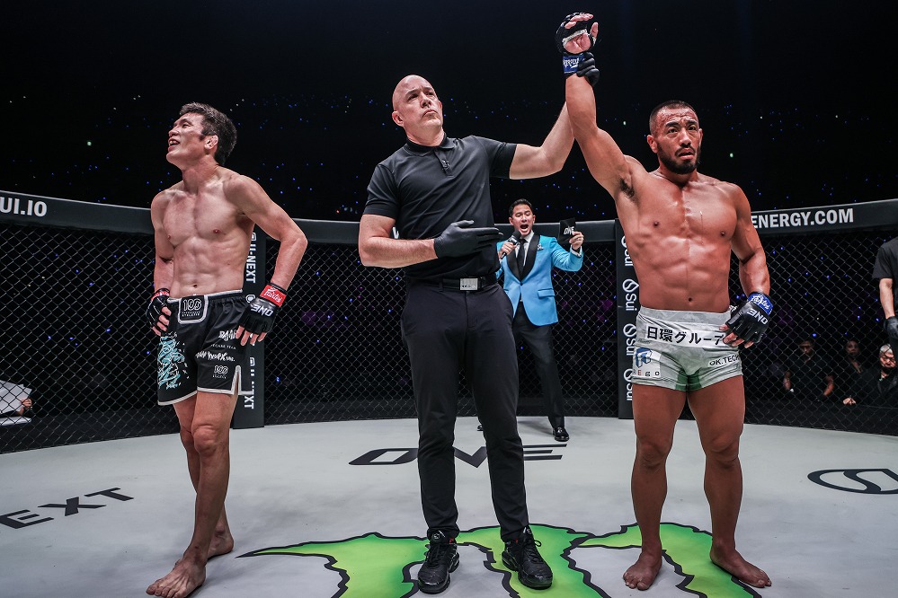 【ONE173】ツイスターを耐えた手塚裕之が、ボディ2発からパンチ&顔面ヒザで青木真也からTKO勝ち