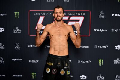 キャリア5戦5勝5KOのフランシスキネーリは、LFA生え抜きのファイターでまだ2Rを戦ったことがないストライカーだ。ウェルター級王座決定戦を戦うのだから、当然ウェルター級のファイターだが、身長は198センチでリーチは驚異の213センチと2メールと越えている。