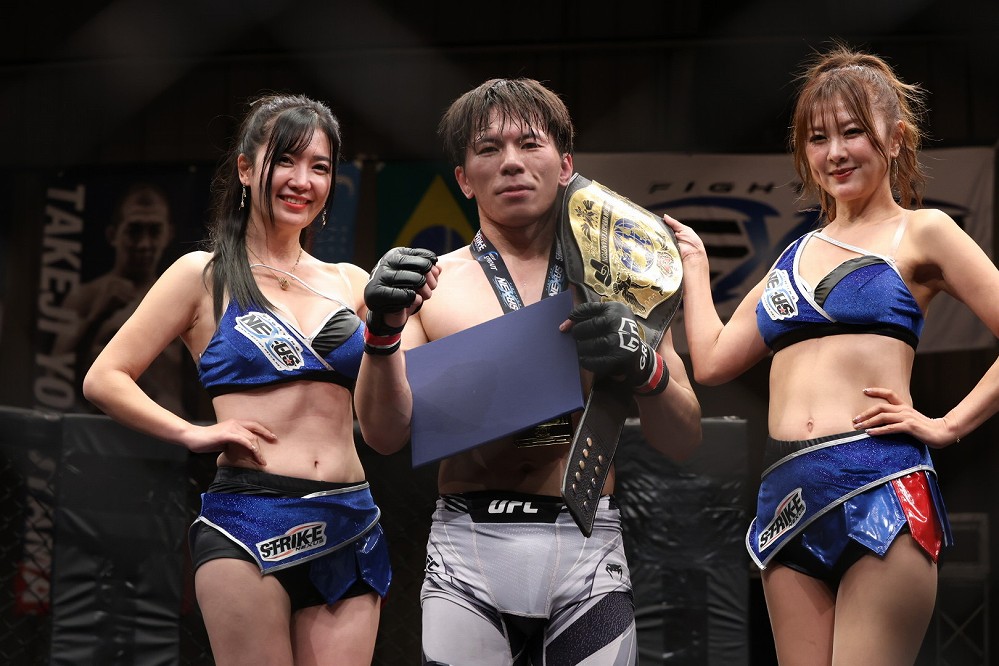 裁定は3-0で中桐の勝利。バンタム級のベルトを巻いた中桐は「ちょっと右手が折れちゃって。なんとか勝つことができました。バンタム級の3代目チャンピオンなんですけど、初代の渡部修斗さん、2代目の河村泰博さんはRIZINに出ているので、僕も出たいです。本当は河村さんと対戦する予定だったのですが、今日セコンドについてくれている石司さんと来月戦うことになっています。そのセコンドも頑張ります。僕ならヤマニハ選手に勝てると思っています。これからも練習、頑張ります」と挨拶した。