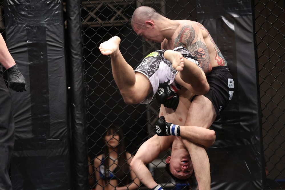 須藤がシングルレッグに切り替えると、横山がスイッチからトップに回りパンチを落とす。ボトムになった須藤は横山の右足を狙うが、それを潰した横山がパウンドを連打。須藤の足を捌き、最後はボディロックから抱え上げて試合を終えた。