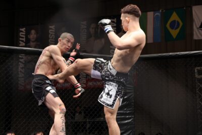 須藤の足関節に対し、横山は外側の足の足首を掴んで遠ざけたり、背中を着けてきたら頭を突っ込むなどのディフェンスで足を取らせず。裁定は1人のジャッジはフルマークをつけるユナニマス判定で、横山がフェザー級王座の防衛に成功した。