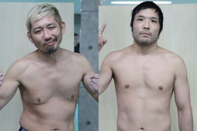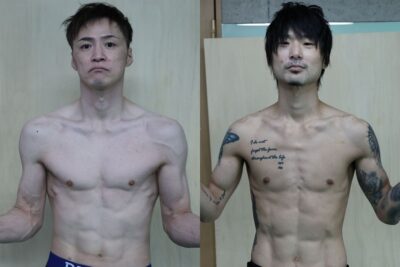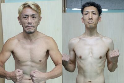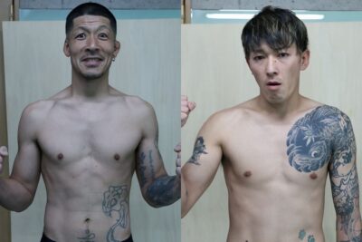 しかし、五所川原の気温は摂氏3度。ジョグから戻った斎藤は「汗が出ない」と焦りをにじませる。ここで伝説の逆立ちをしてもクリアせず、ミット打ちをストーブのある計量会場内で行うことに。ミット後もメインに出場する小倉卓也らが懸命に体をさすって、発汗を促す。