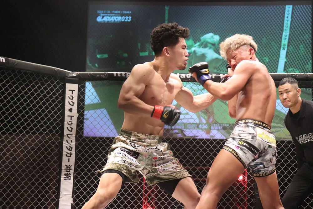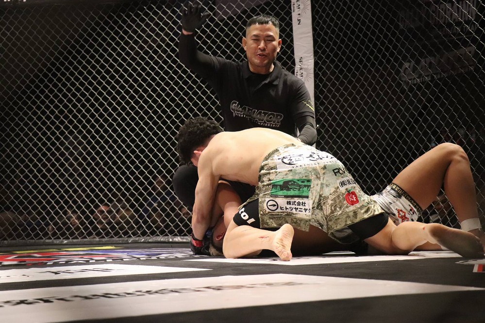 【Gladiator033】左が冴えわたる南。ルキヤをパウンドアウトし「このベルトを引っ提げて世界で戦います」