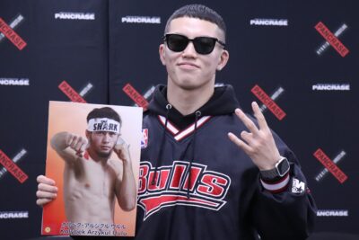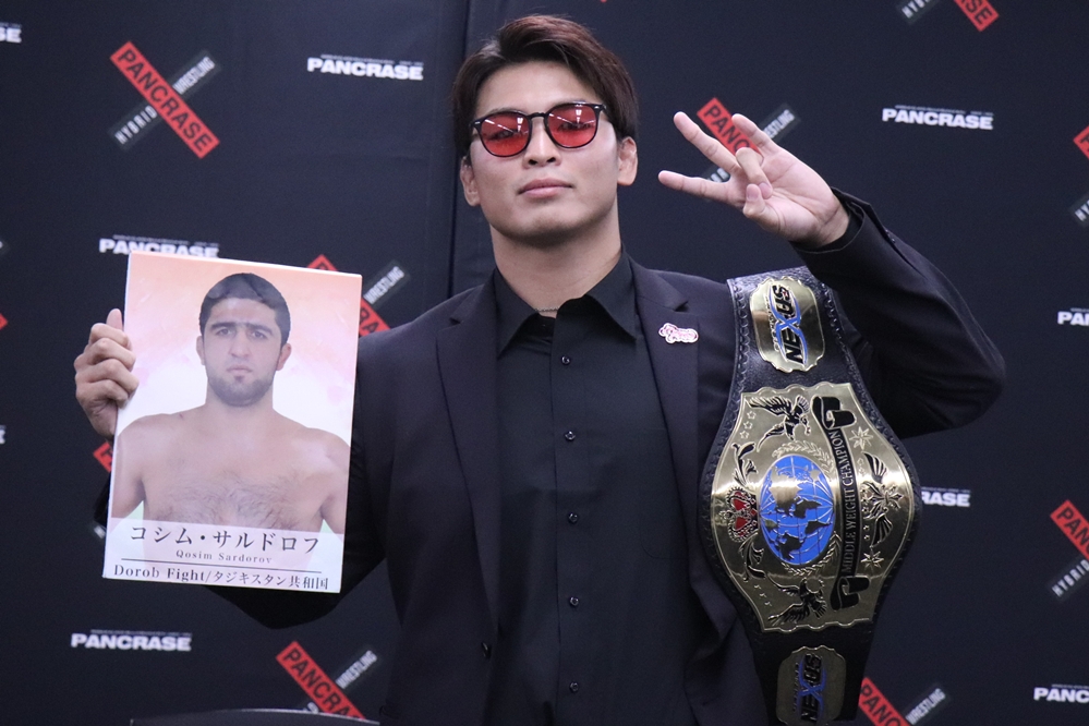 「今回タイトルマッチをやらせてもらいます。めっちゃ楽しみです。(海外の強豪に対して何で対抗したい?)全部やってやろうと思っているので、寝技でも組みでも打撃でも、自分から試合を作ろうと思っているので。最近は判定になる試合がちょくちょくあって面白くないなと思っているので、自分から(試合を)作って面白い試合をして、主導権を握り続けられるような感じにしようかなと思います」