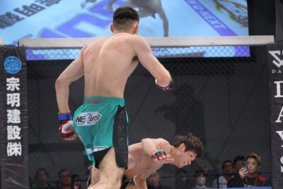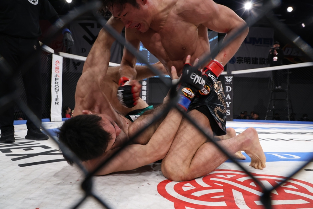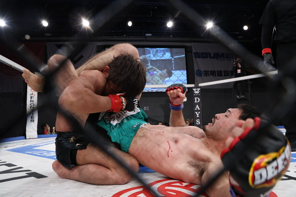【DEEP129】石司、初回にダウンを奪われるも2・3Rは河村の関節技を凌いでパンチを当てて判定勝利