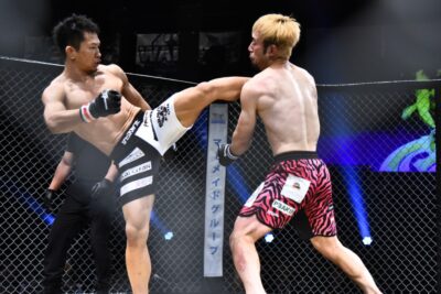 「いえ、昔は左ミドルを蹴ることはできませんでした。とにかく蹴りがヘタクソで、禅道会時代の先輩から『ムエタイの左ミドルを蹴れないとダメ』だと言われたんです。MMAで蹴っても掴まれない左ミドルを。そこからムエタイのジムにも通い始めて、まずその成果が首相撲と左ミドルに表れてきましたね。たぶん骨盤をしっかり使って蹴っているから、見た目も綺麗に感じたんじゃないかと思います」