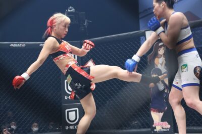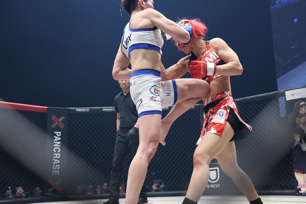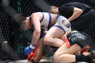 これは極まらずもマウントからパンチを連打。耐えるKARENの体をバックマウントで伸ばしてRNCを仕掛けた。凌ぎ続けるKAREN、殴り続ける本野。残り1分で再びバックマウントを奪取した本野は、腰を上げて前に振り落とそうとするKARENにパンチとヒジの連打を浴びせて試合を終えた。