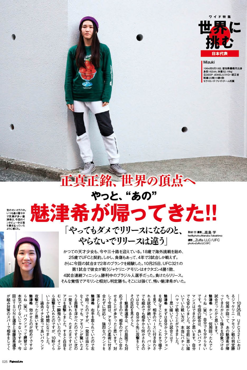 23日(火)から発売中のFight&Life#112で、10月25日のUFC321でジェケリニ・アモリンに勝利した魅津希のインタビューが掲載されている。
