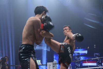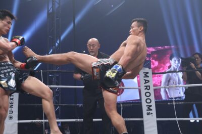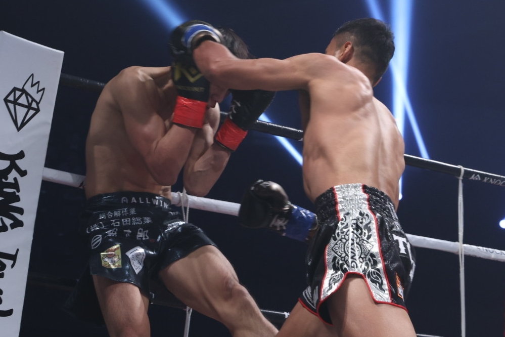 シッティチャイは左ボディストレートから顔面への左フック。海人はインカーフで前進。シッティチャイが左ストレートを当てると海人も右を返す。互いに前蹴りを見せ、海人がパンチのプレッシャーをかける。シッティチャイもインローを蹴り、首相撲で海人の追撃を遮断する。
