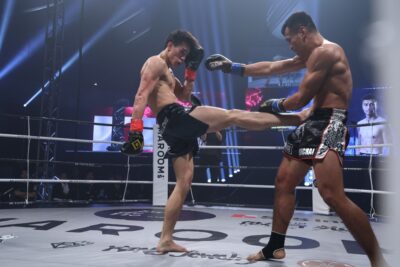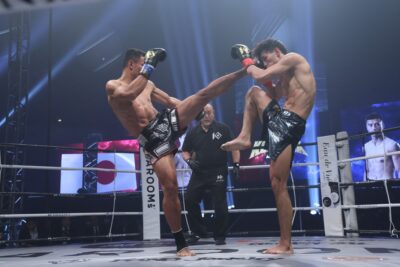 2R、海人が右ミドルとロー。シッティチャイも左ミドルと左ストレート、奥足ローを蹴る。海人がヒザ蹴りで前に出るとシッティチャイは左ストレートを合わせる。さらにシッティチャイは左のヒザ蹴り。海人は右ストレートから前に出ていくが、シッティチャイが左ミドルを的確に当てる。海人はシッティチャイの左ミドルを受けて左フック、前足へのカーフまでつなげる。