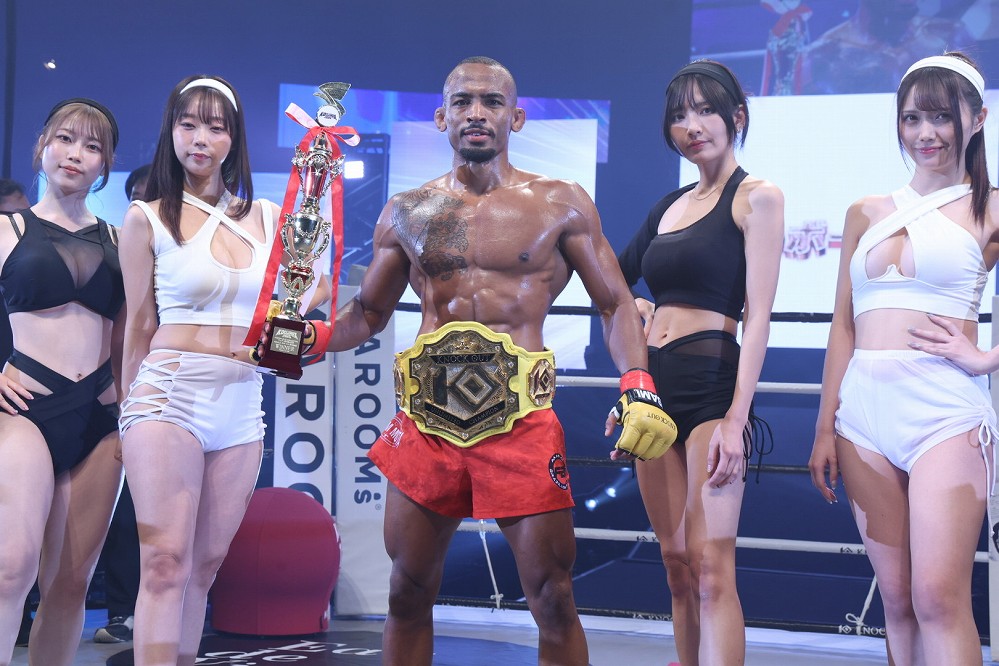 超スピーディな展開をKOで制し、UNLIMITEDフェザー級のベルトを巻いたモタは「次の試合が決まったらすぐ出られるように準備して、また皆さんの前で戦いたい。(ベルトを狙うファイターに対して)来るなら来い」と語る。さらに「個人的なことですが離婚して2日後にKNOCK OUTからオファーが来た。今年は最高の1年だった」と笑顔で締めた。
