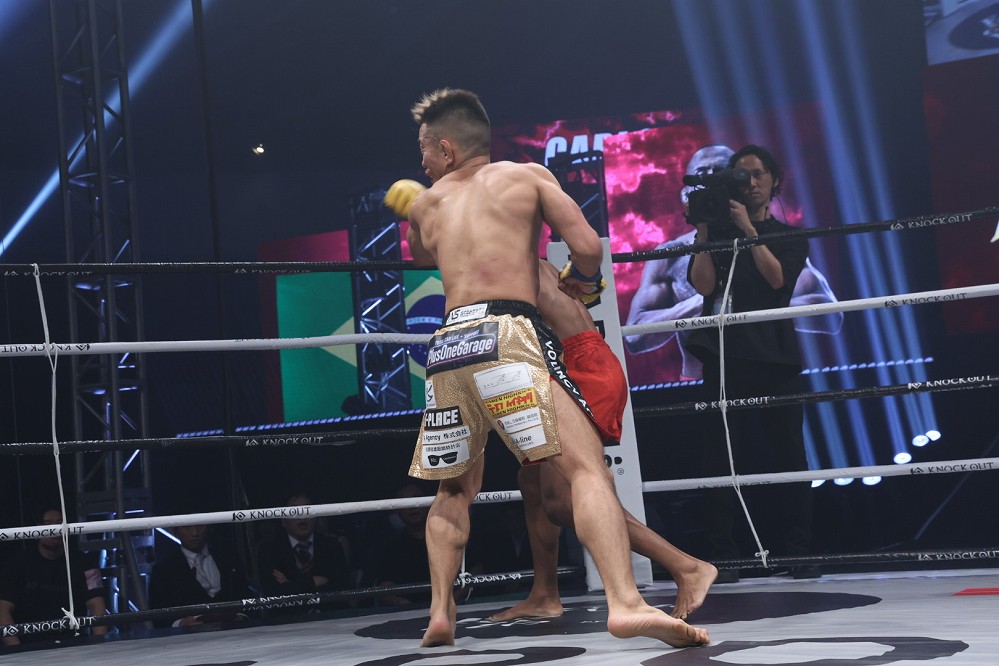 2R、モタが左右に回る。相手の右に右ストレートを合わせる有川。しかしモタも有川の右ローにパンチを合わせ、マットに手を着かせた。有川はシングルレッグからスタンドに戻る。有川がモタのローを受けながら右を突き刺した。モタは左右ボディ。有川がテイクダウンのフェイントから右ヒジ、左ハイでモタをかく乱する。右ストレートをおとりに左ジャブを当てる有川だが、続いて右ボディストレートから左フックに繋げると、モタに左フックを合わされてしまう。