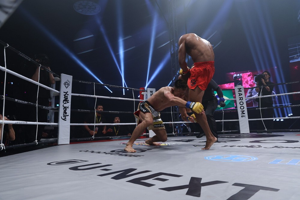 【KNOCK OUT60】モタが有川との高速カウンター合戦をKOで制し、UNLIMITEDフェザー級のベルトを獲得