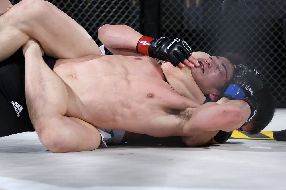 <バンタム級/5分3R> 徳弘拓馬(日本) Def.2R2分08秒 by RNC 榎本明(日本)