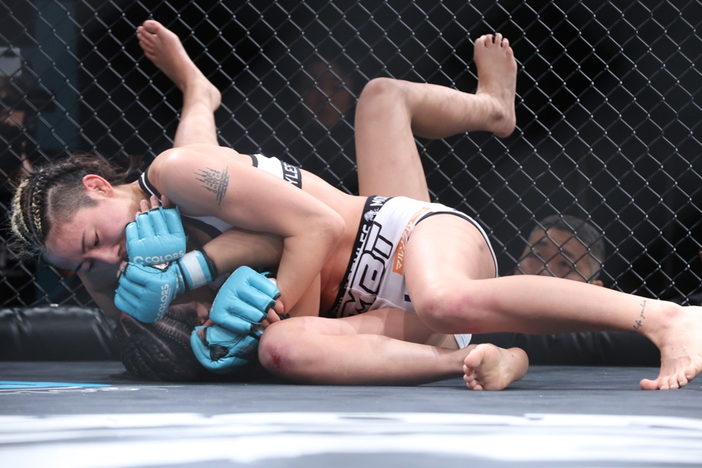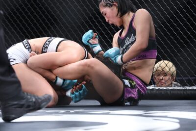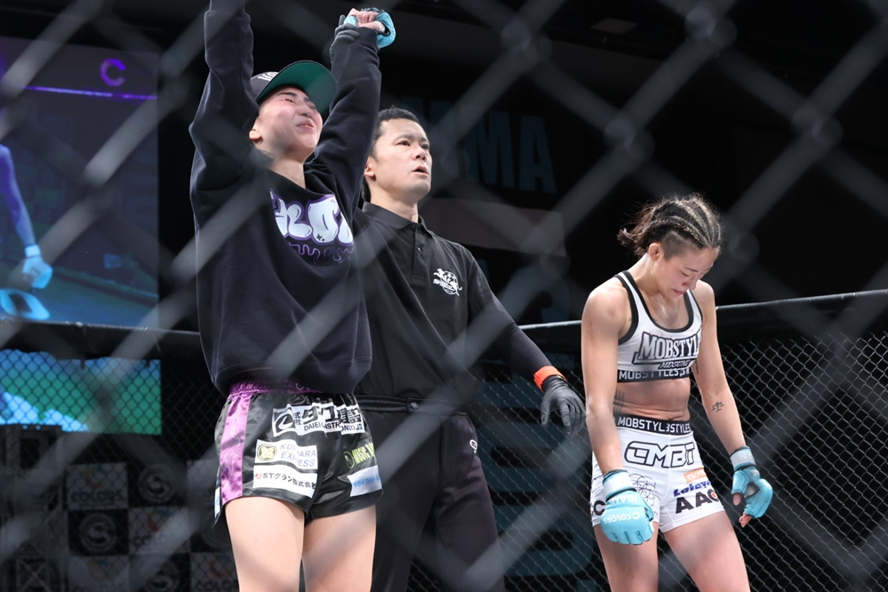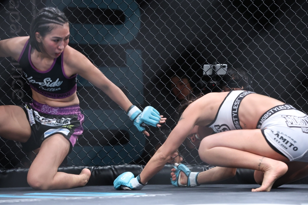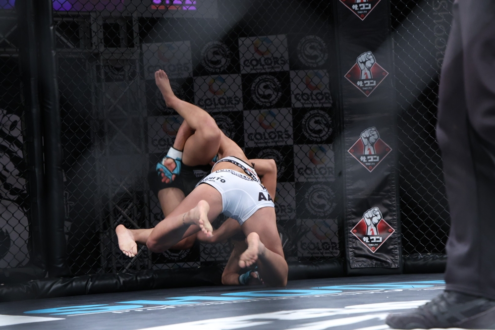 ここで徳本が距離を取り、杉本が立ち上がる。杉本はすぐにダブルレッグに入って徳本をテイクダウンし、徳本の左足を超えてハーフガードでトップキープする。杉本は左足を抜いてパスガードするとヒジ打ち。体を起こそうとする徳本を寝かせ、肩固め→袈裟固めで押さえてパンチを落とす。徳本も下から足を絡めようとするが、杉本がトップキープして試合終了。判定は2-1と割れ、キャリア3戦目の徳本が杉本から勝利をもぎ取った。