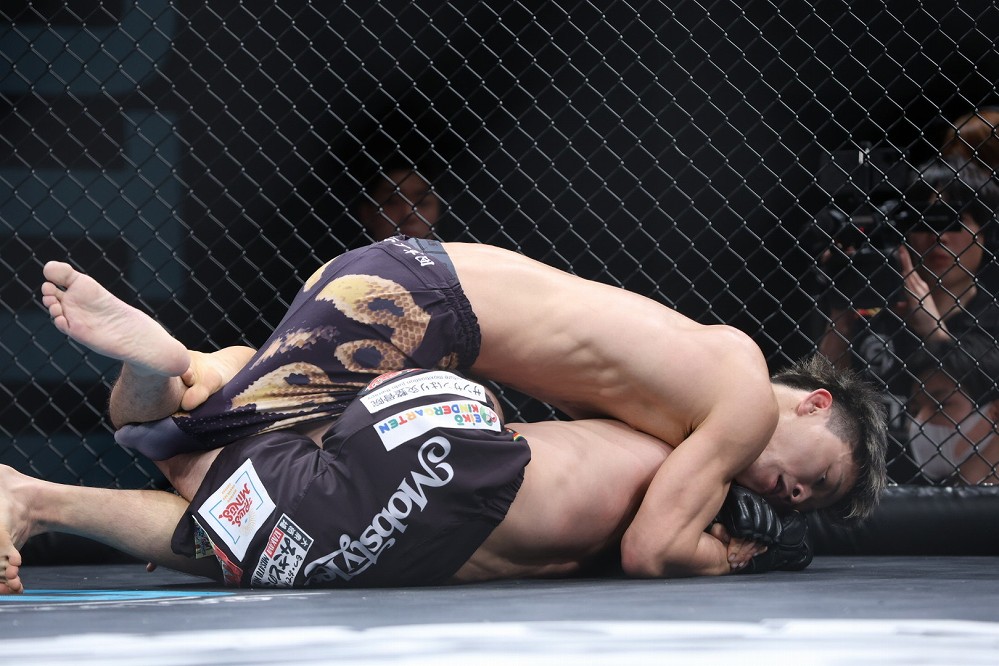 【写真】黒部が目まぐるしく動き続けるグラウンド戦を制した(C)MMAPLANET
