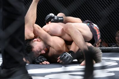 下からキムラを狙う黒部をパスした旭那は、腕十字を狙いながらマウントへ。さらにバックテイクからボディトライアングルに。黒部は腰を上げて、前に振り落とそうとする。そのまま持ち上げて、旭那に背中を着かせた。下になった旭那は足を上げるが、黒部がパンチを落とす。朝比奈が体を起こすと、黒部がバックを狙って試合終了となった。