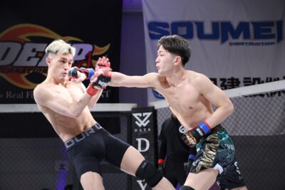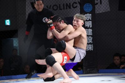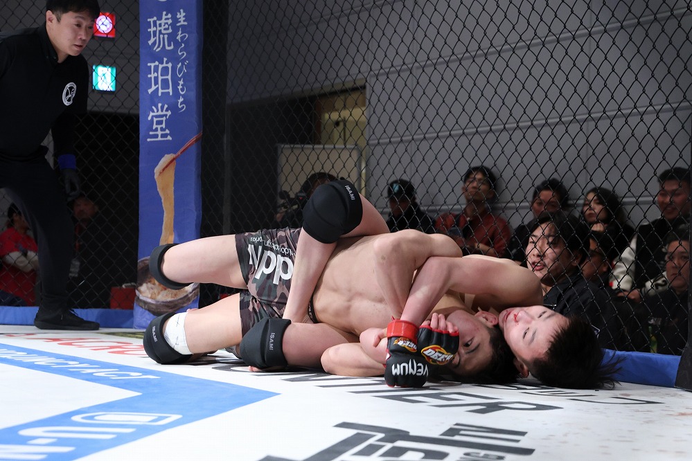 お目当ての選手以外の試合も、3分×2Rと5分×2R、1時間30分ほどのMMA観戦だから気持ちがだれることはなく最初から最後まで、試合を楽しめる。出場選手自身も、宇尾園の声を全て拾うことができる会場の空気感と、アマチュア選手も入場曲とともにケージインすることで高揚感もマックスに。とにかくアグレッシブなファイトが連続した。それでも真剣勝負の格闘技だ、全てが好勝負になるわけがない。それでも通常の大会ではトイレタイムになりそうな試合ですら、動き云々以上に気持ちが伝わる距離感によって”見られる“試合になっていた。