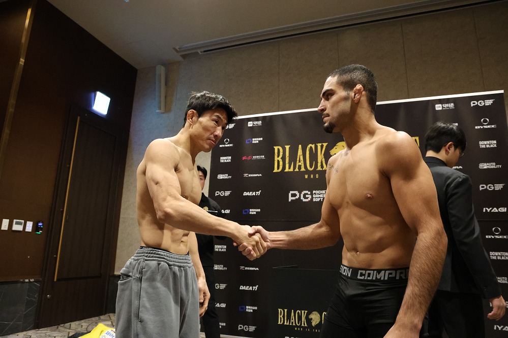 31日(土・現地時間)、韓国はインチョンのインスパイア・アリーナで開催されるBlack Combat16「EXODUS」の計量が、同地インスパイア・オーシャンタワー内カンファレンスルームで行われた。