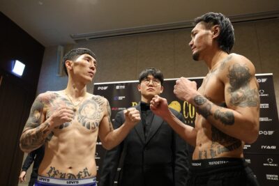 また注目の中央アジア・バンタム級無敗勢のフェイスオフは、ダニエル・トチュベク・ウールがキム・ドンギュに強めに肩を押され、ワキ腹の辺りを押し返すシーンが見られた。