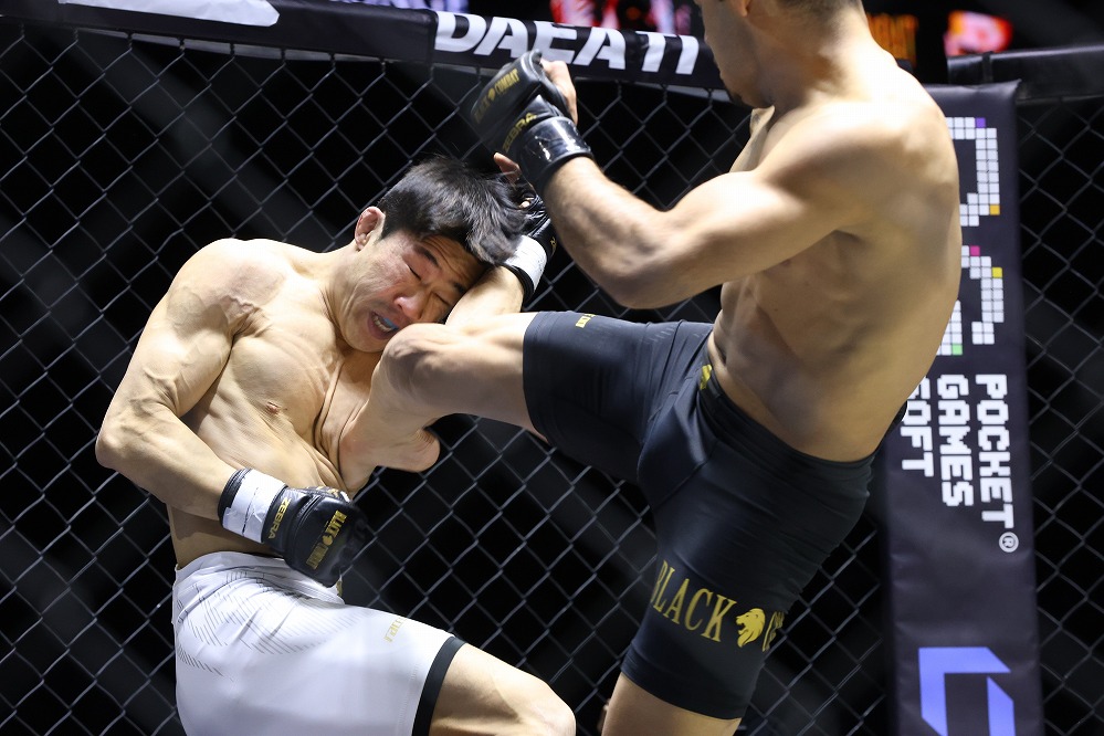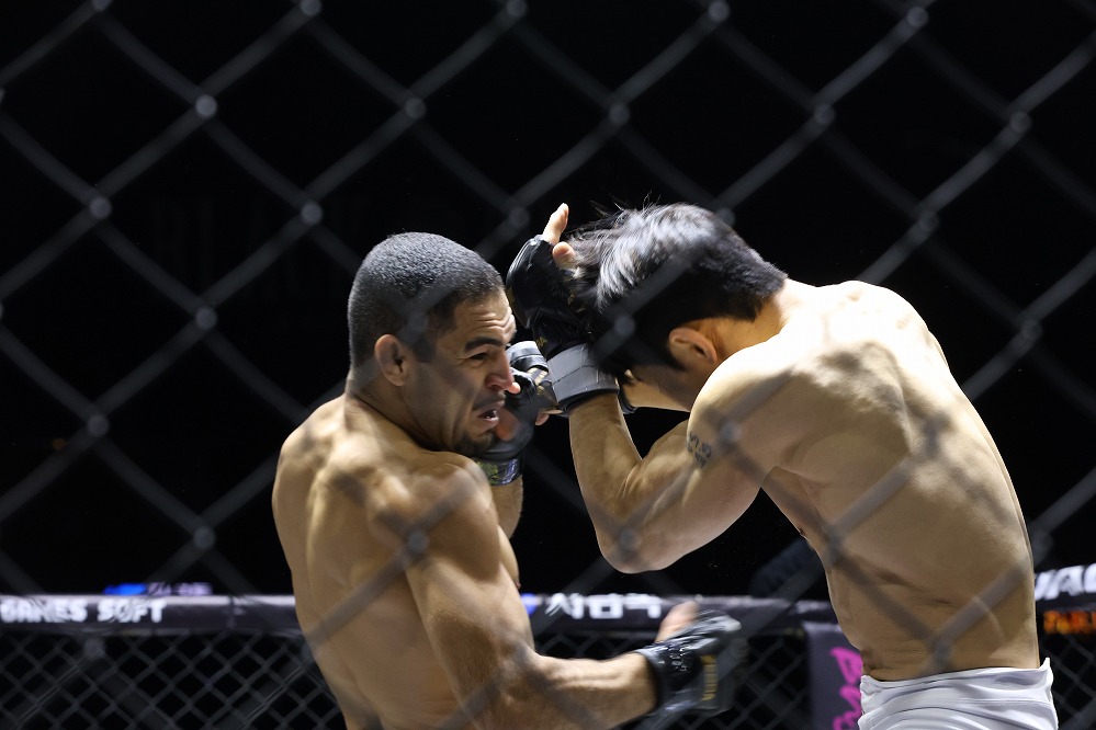 ジョンテの顔は鼻と口からの出血で真っ赤に染まり、コヘイアは容赦なく右ジャブ・左ストレートをゴツゴツとヒットさせる。距離を詰められずコヘイアのパンチとローを被弾するジョンテ。逆にコヘイアは両手を細かく振ってワンツーから右フック、回転系の蹴りとパンチを繰り出す。最後はパンチで前に出るジョンテに対し、コヘイアが両手で観客を煽るパフォーマンスを見せて試合終了となった。