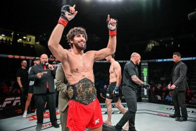 ウクライナ人ファイターで、キルクリフFC所属のアラクヴェルディエフは昨年8月にカナダのジョン・ムーアと王座決定戦を戦い、左フックでダウンを奪うとパウンドの追撃で僅か63秒TKO勝ちを収めベルトを巻いた。