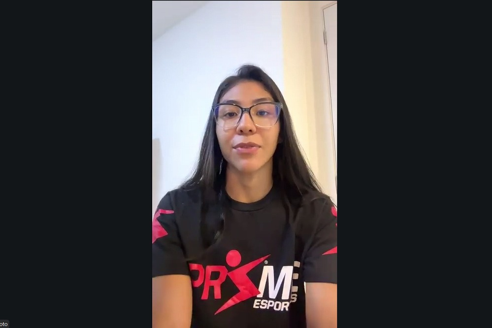 【写真】前半の通訳をしてくれたのはガビのいとこで、同じく日系ブラジリアンの藤本あゆみさんで、現在は日本在住。ガビは2003年2月14日生まれ、現在はリオのKOスクワッドに所属している(C)MMAPLANET