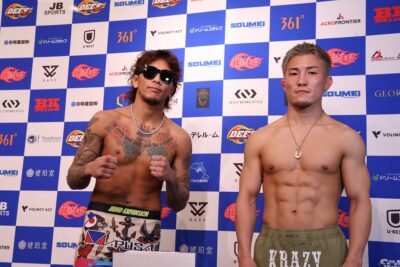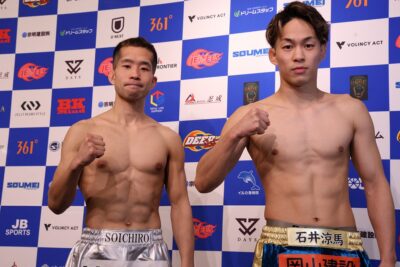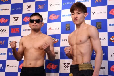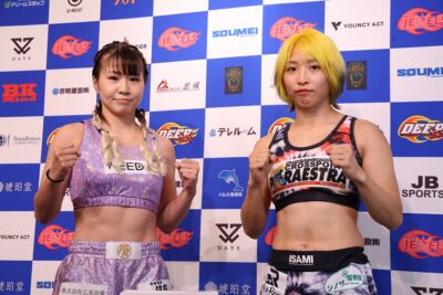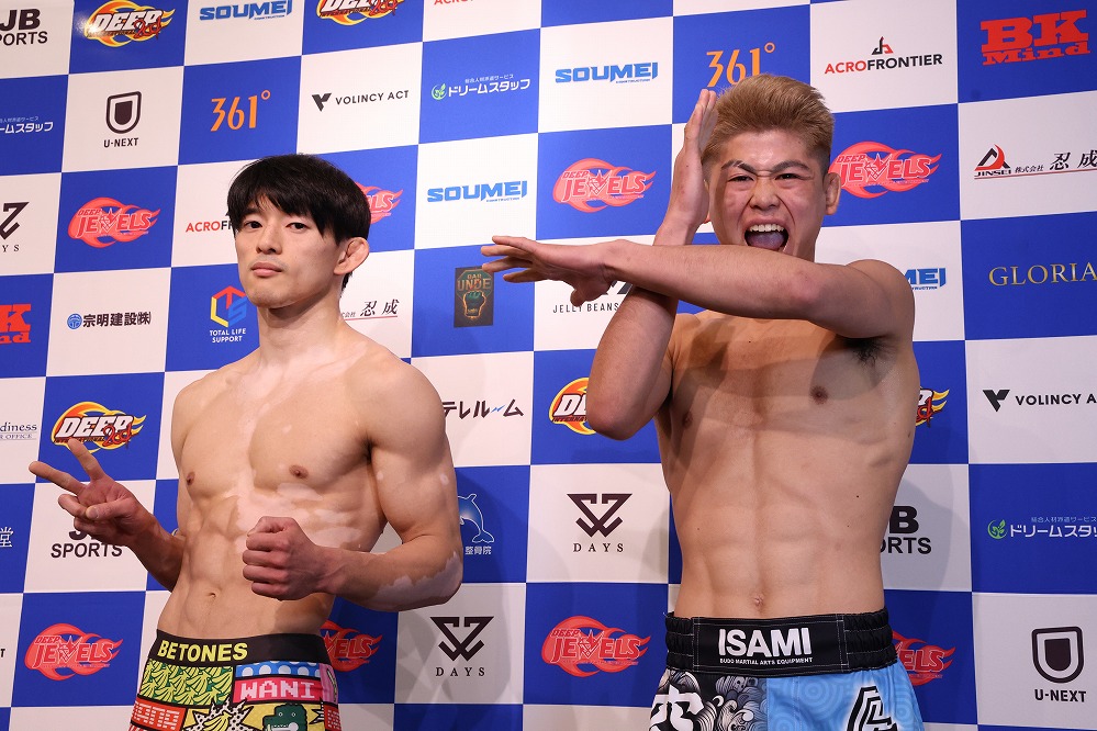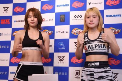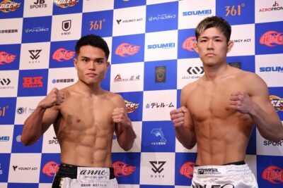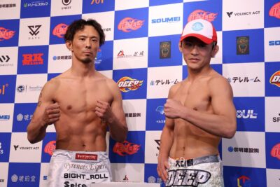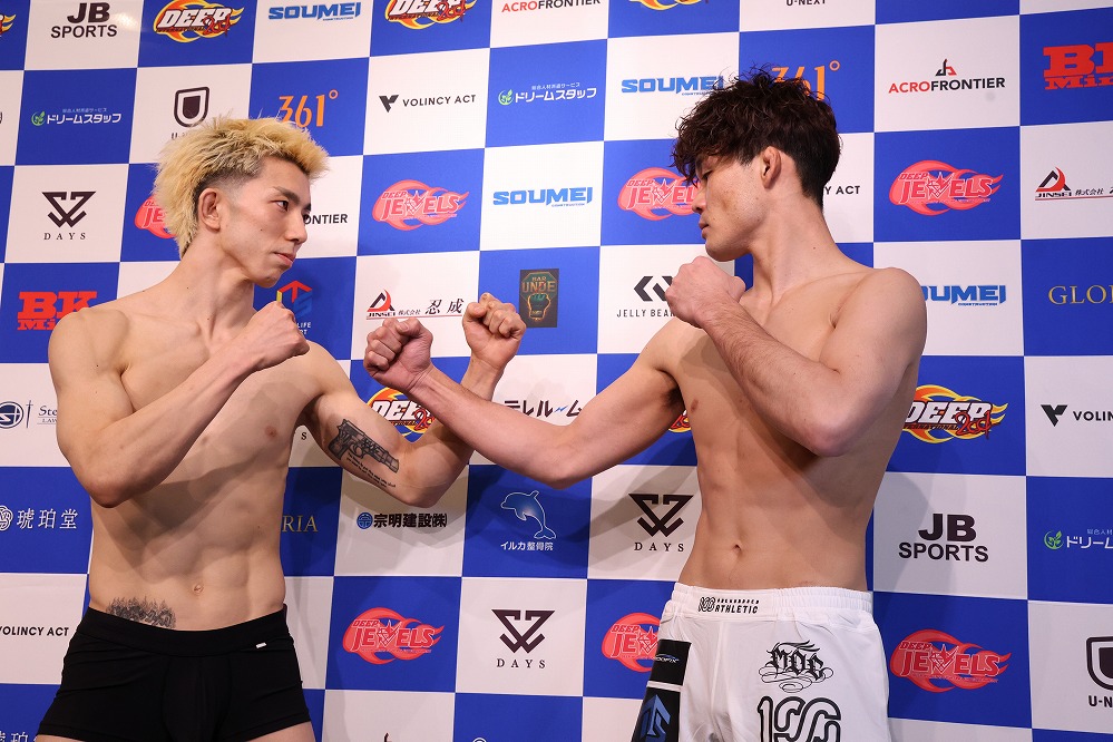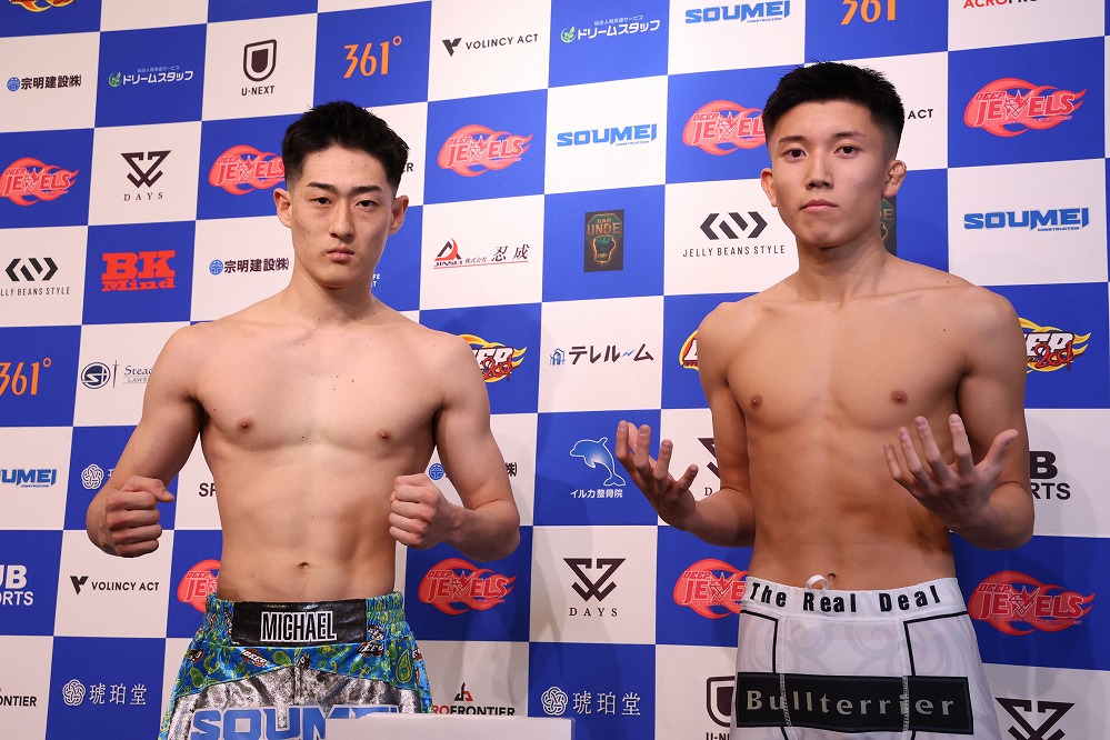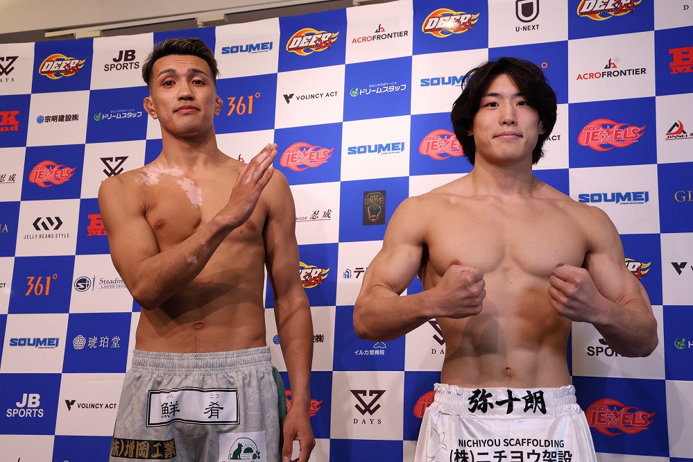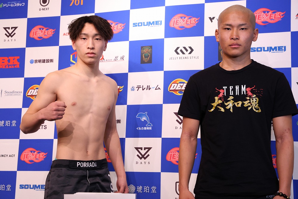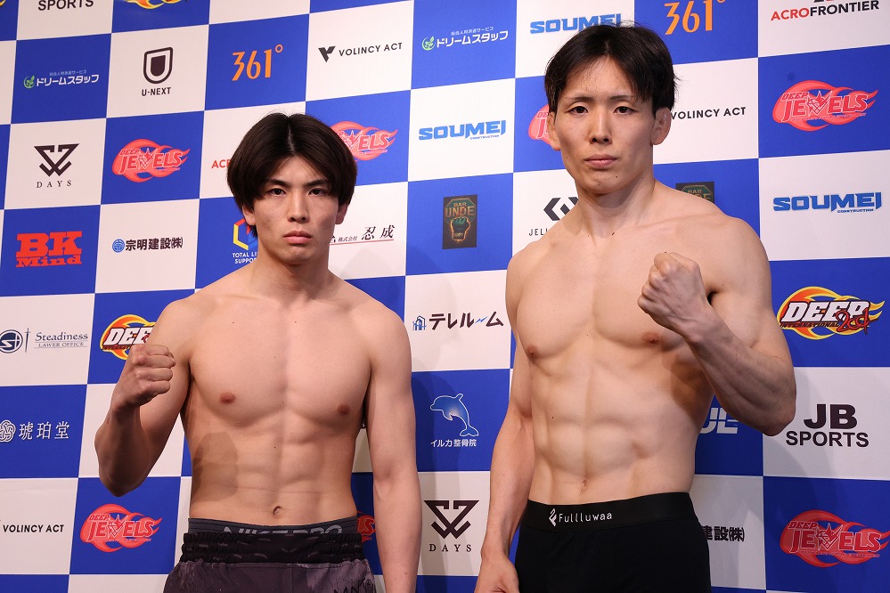 明日23日(月・祝)に東京都港区のニューピアホールで開催されるDEEP JEWELS52とDEEP TOKYO IMPACT2026#01の計量が、本日22日(日)に新宿区のホテルローズガーデン新宿で行われた。