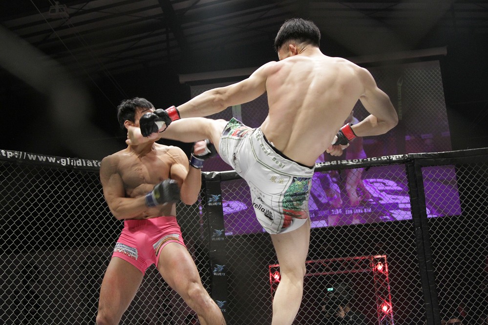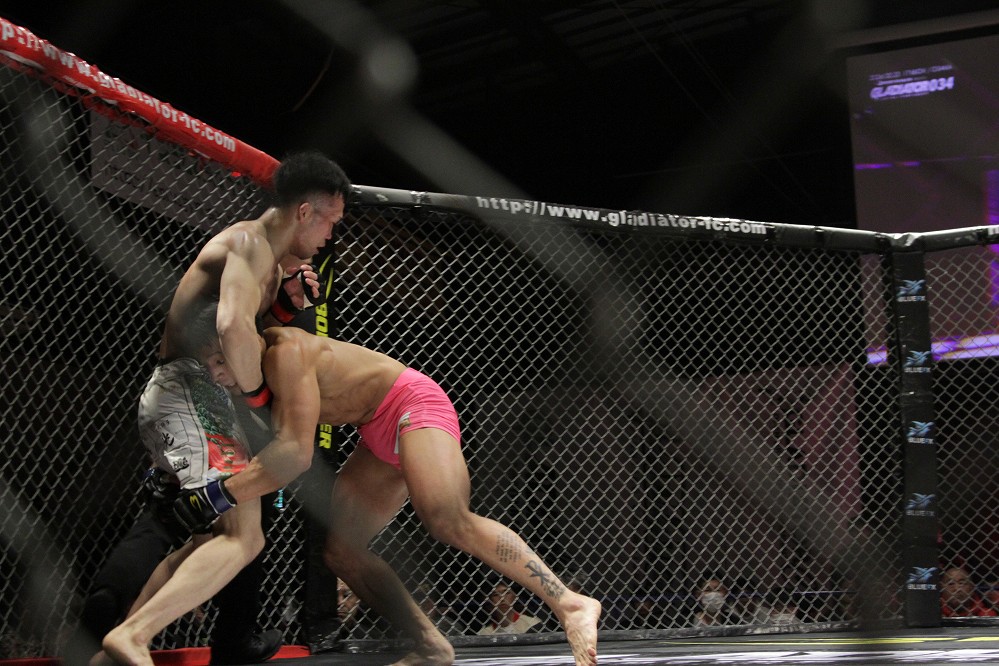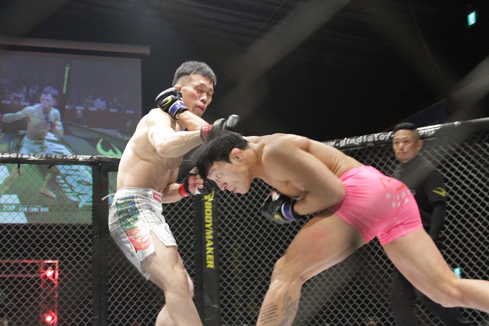 【Gladiator034】TDを奪ったキム・ウンソンがケージを掴んで鉄槌→上田祐起が左目負傷で、反則勝ちに……