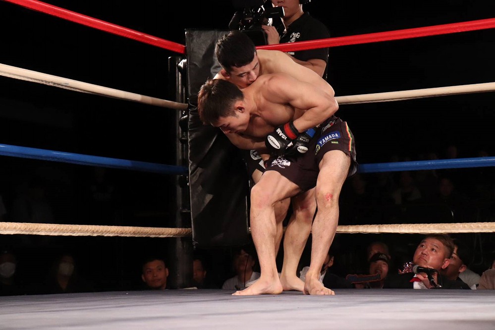 藤田が人見の左をかわしてグラウンドに持ち込む。しかし人見がコーナーに背中を着けて上半身を起こし、左アンダーフックで藤田をひっくり返した。フックガードの藤田から離れた人見は、立ち上がって左ストレートを伸ばす。藤田もパンチを当ててからシングルレッグへ。ヒザを着き、左オーバーフックから返そうとする人見のバックに回った。