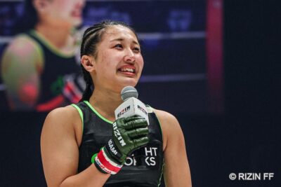 「今年一発目のRIZINで、新しい自分の幕開けどうでしたか。トイレ休憩とか、女子格興味ないとか言われるんですけど、私は面白い試合をするのでこれからも応援よろしくお願いします」とマイクを持って話した。